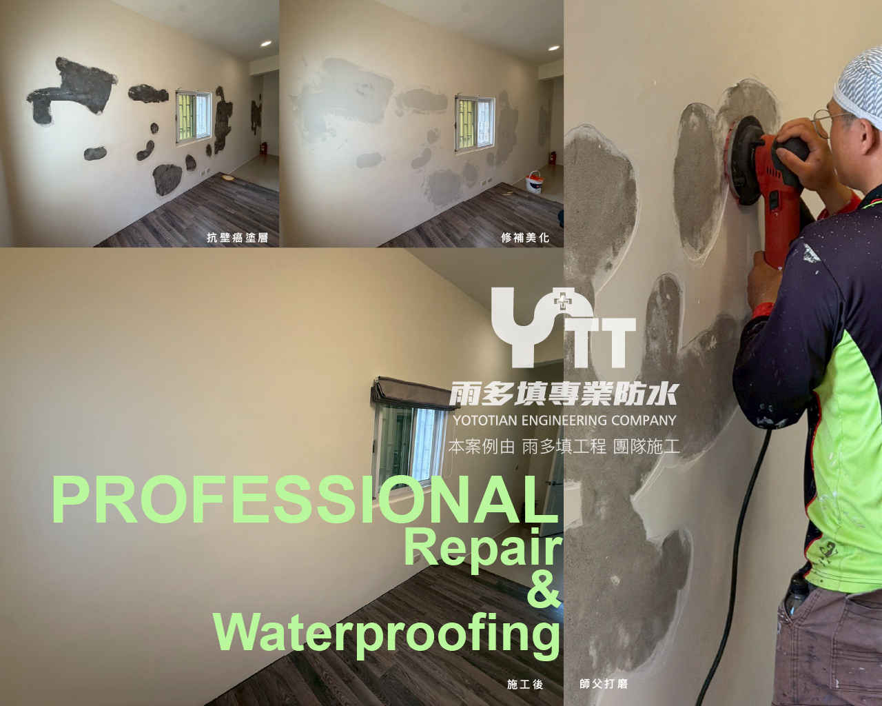 它其實是一種水氣滲透+鹽類析出(白華現象)+材料劣化的綜合問題。